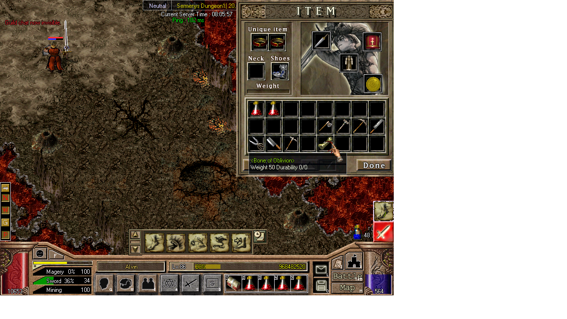 Also, looking at your pic, you should set hotkeys to your spells, it makes things a lot easier. Would also recommend gold pots instead of blue for the quest. Also noticed you arent wearing any sort of mantle. You should get one of those or do a quest for moonstone amulet (fatal bone quest) it has 1/2 the white ac of an ac mantle